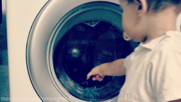 Doudou (et même Loulou) en est accro! il m’aide a mettre le linge dedans, a appuyer sur les boutons , a fermer la porte.