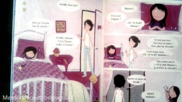 Enfin, tout ça, je l’ai déjà dit dans d’autres billets … Je tenais simplement à dire qu’on s’amuse bien à lire le livre d’Eliette Abécassis. On s’amuse aussi avec les autres bouquins jeunesse de la collection Astalik. En plus ce livre est top pour se familiariser avec le style BD (au programme du CE1) et apprendre à lire les bulles dans le bon ordre.