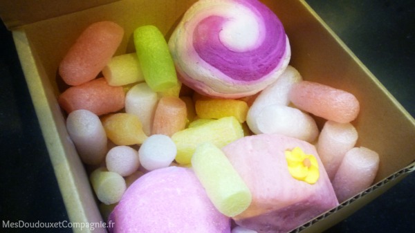 Ce cadeau surprise a eu l’effet escompté. Chupa a juste regretté qu’il n’y en ai pas plus dans le paquet, parce qu’à ses yeux, 2 pains moussants et 2 boules pour le bain, c’est trop peu. Aussitôt ouvert, elle souhaitait déjà sauter les 2 pieds joints dans son bain.