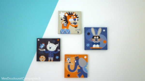 Et depuis peu, il y a 4 toiles imprimées d’animaux du cirque sur le mur qui jusqu’à présent était encore vierge de toute déco.