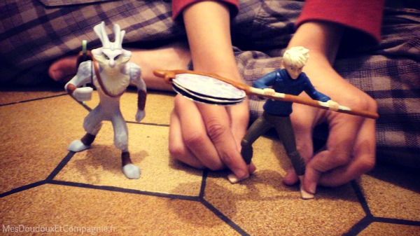Même si mes grands doudoux l’ont découvert en avant-première il y a bientôt 1 mois, grâce au MacDo du coin quand je n’ai pas envie de cuisiner, les aventures de Jack Frost continuent à la maison avec les figurines offertes dans le Happy Meal (surtout que depuis hier, ils ont le lapin de Pâques! Il ne manque que le marchand de sable pour compléter la collection).