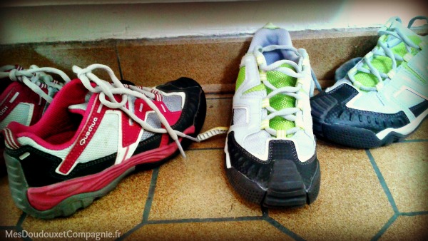 Depuis peu, sa nouvelle passion, en plus de courir et faire du vélo, c’est grimper aux arbres… alors désormais, il a des CrossRock de Quechua aux pieds. Des chaussures résistantes censées survivre à toutes les aventures que mes doudoux leur feront vivre.