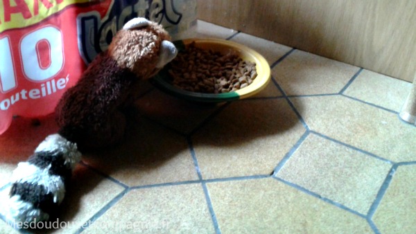 Je l’ai vu s’aplatir sur le carrelage, regarder sous la table basse, allongé le bras puis s’asseoir en râlant de nouveau. Je veux être son héroïne, alors en bonne supère maman, je suis allée à son secours, voir ce qu’il désirait tant sous la table. Et là, il y avait son ratou. Ratou, c’est son doudou fétiche. Un raton laveur roux que Chupa avait ramené en souvenir de notre visite au refuge de l’Arche lors de notre croisière fluviale l’été dernier. Chupa a d’ailleurs eu beaucoup de mal à s’en séparer, puis finalement, elle l’a laissé à son petit frère en disant qu’il lui rendrait plus tard.